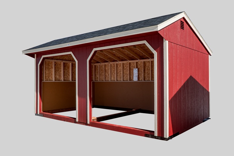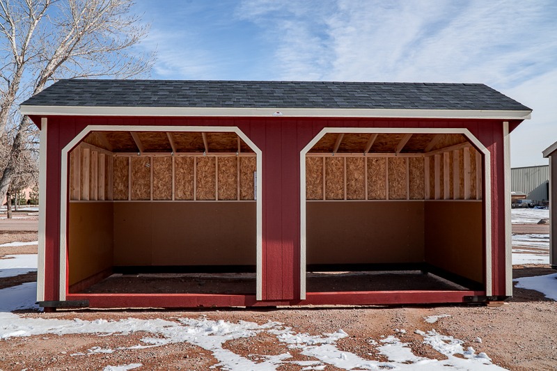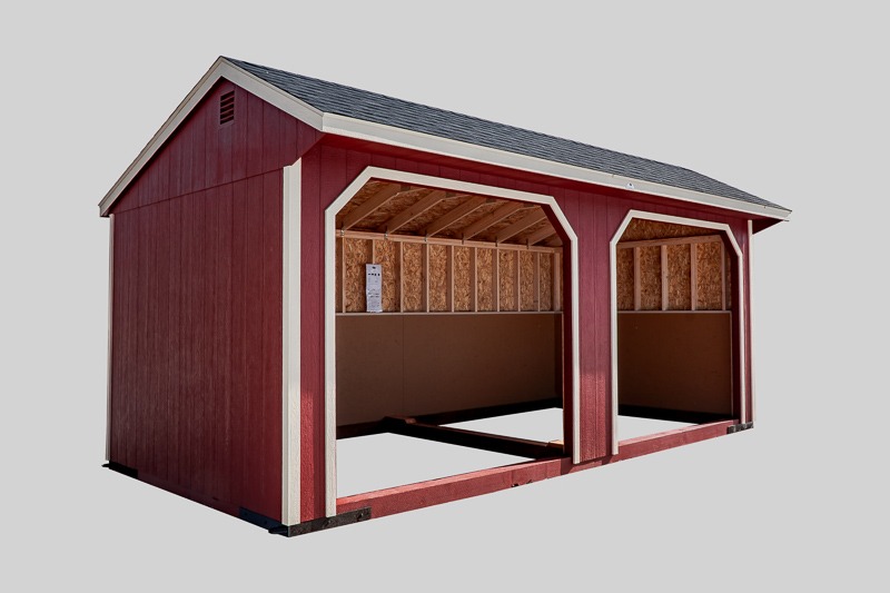 With kick boards to protect the walls, horizontal drip edges to discourage chewing, a wooden roof that is quieter during storms, and an optional tack room, this shelter is designed with your animal’s comfort in mind.