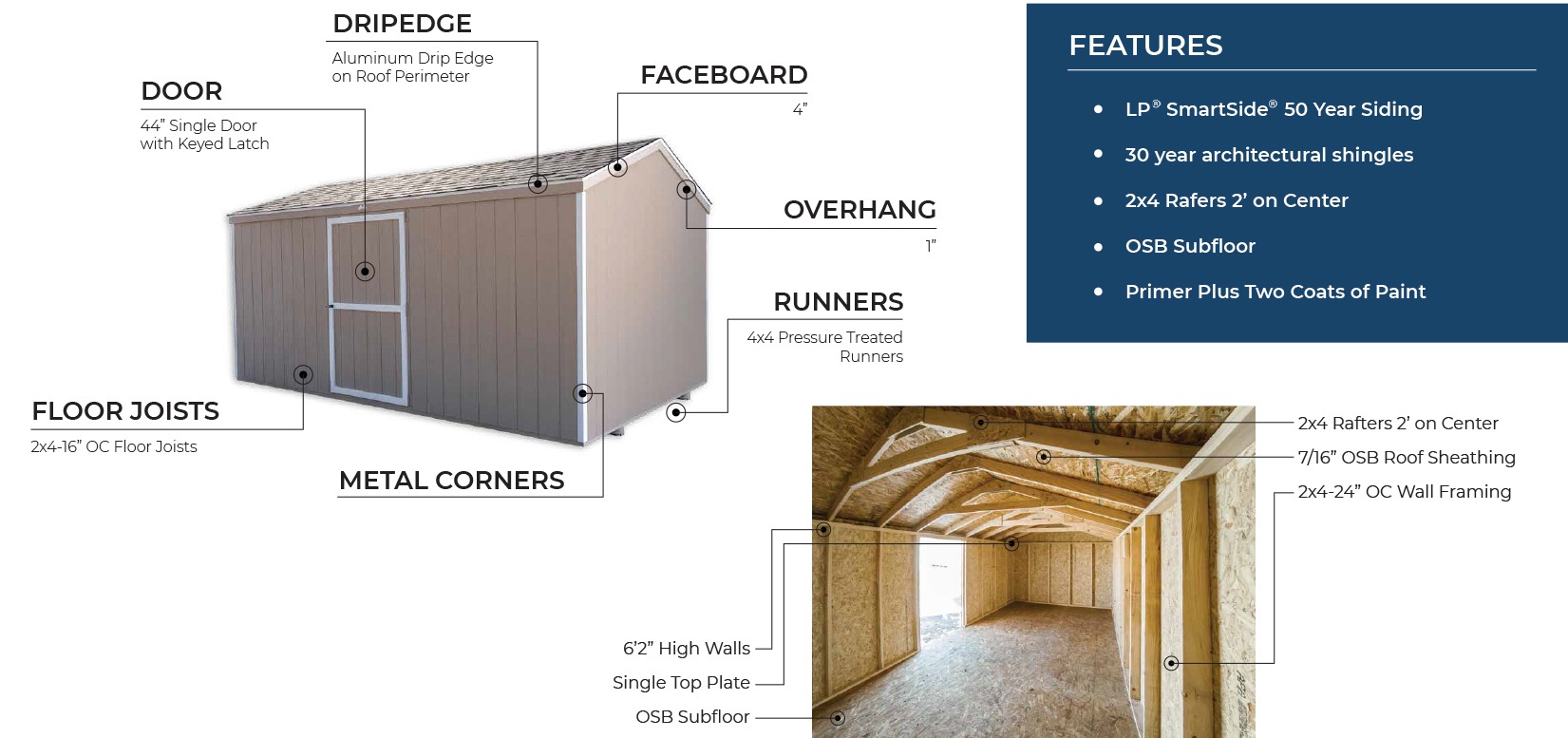 Quality meets affordability. This basic storage shed gives you the space you need at the price you want. Our economy buildings help our customers save 20% off our premium products. Some of our premium features are not included.
